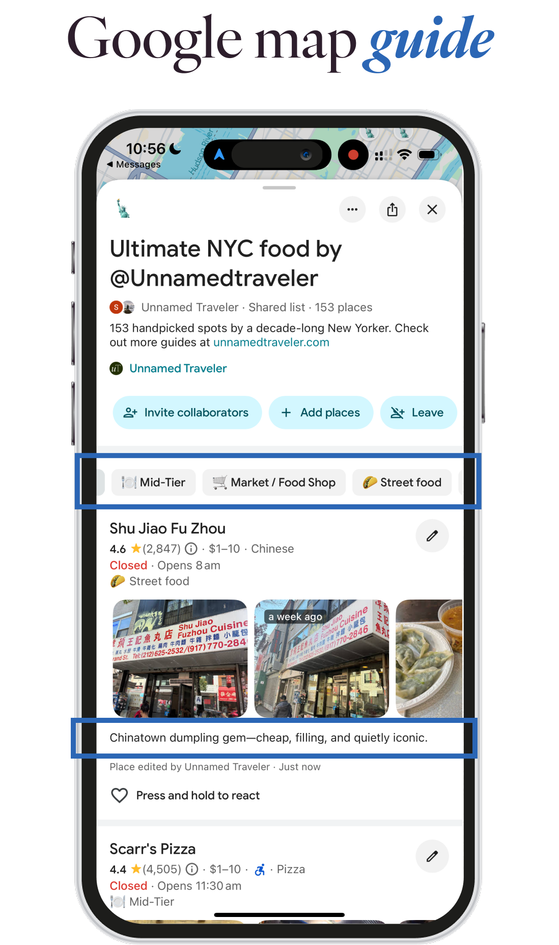 New York is massive. Instead of pretending you’ll “eat the whole city,” this guide organizes your trip into realistic neighborhood clusters on a Google Maps guide: