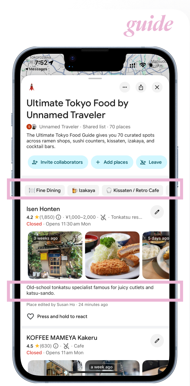 The focus is food-first—ramen, izakayas, kissaten, coffee, snacks, bars.
